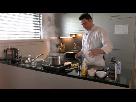 Die Spargelspitzen können auch erst dann, wenn die Suppe fertig gemixt und leicht gebunden ist, in der Spargelsuppe weich gekocht werden. Wenn Sie die Suppe mit einer Liaison gebunden haben, geht das natürlich nicht mehr.